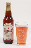 Doc's Draft Framboise is made by the Warwick Valley Winery and checks in at a 5.5% ABV. I had been wanting to try this for a long time and eventually picked up a bomber to split with Mrs. TFH. It poured a clear, light pink rose color with large amount of bubbles that dissapaited quickly and formed a thin row of bubbles that surrounded the perimieter of a champagne glass. The aroma was overwhelming, with huge amounts of tart raspberries. The body was sweet up front, light raspberries on the palate, and a sour finish. The body was crisp, almost the exact same texture as champage.